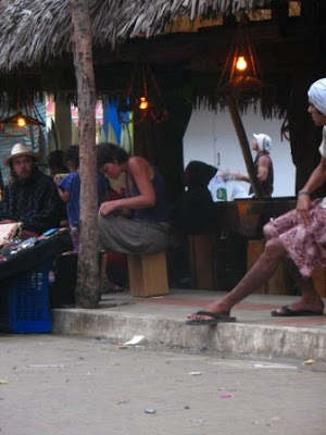 Queriendo ir hacia Salinas, un camión nos trajo hasta Montañita. Gringo y surfers y anarquía y descontrol y Wild On Montañita... Es así, y acá estamos vendiendo y renovando el paño con nuevas manualidades a lo Utilísima Satelital.
